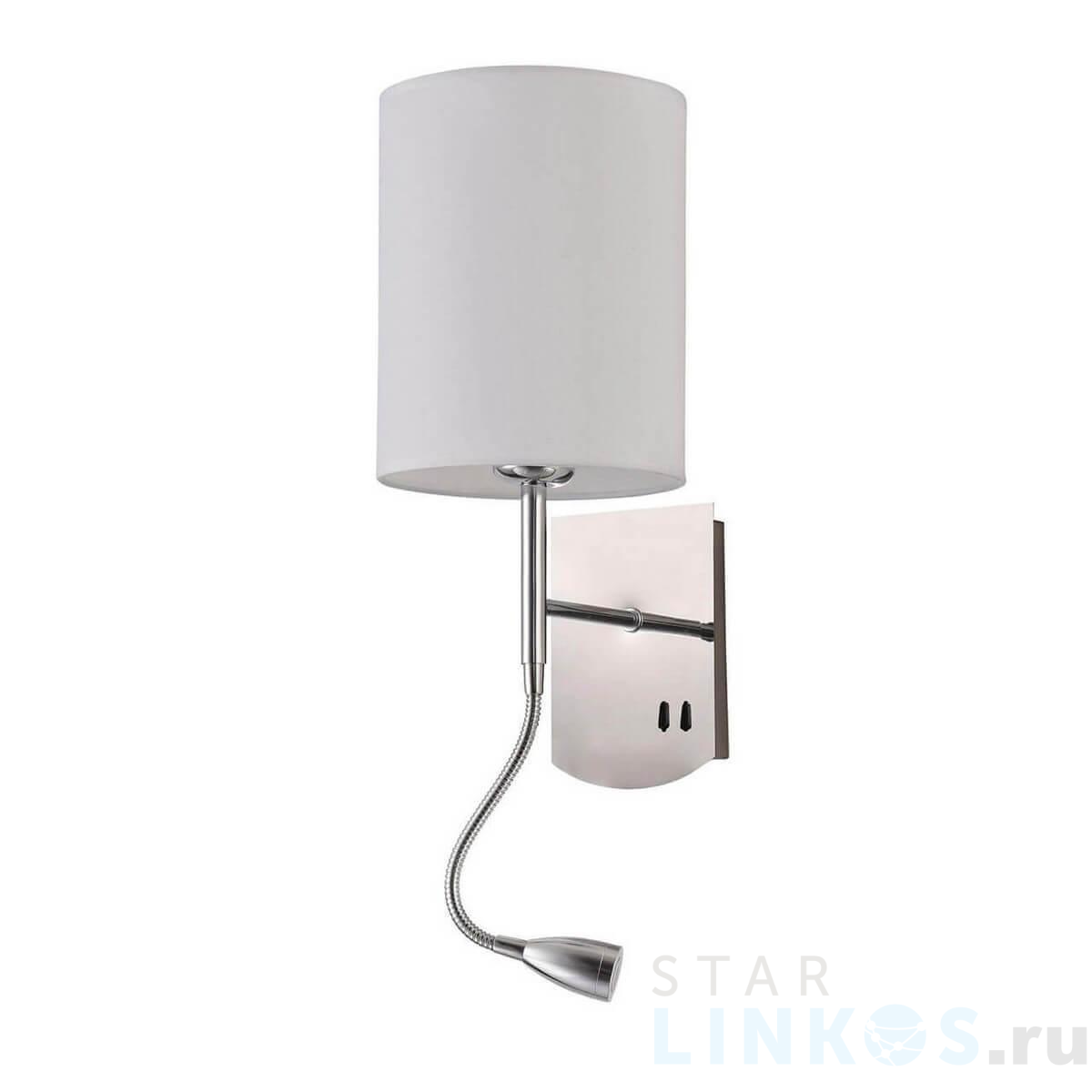 Поставщик рекомендует использовать лампы накаливания с цоколем E27 для освещения площади 3,3 м2. Бра Maytoni Bergamo MOD617WL-01CH в современном стиле используется в интерьере спальни с установкой на стену.