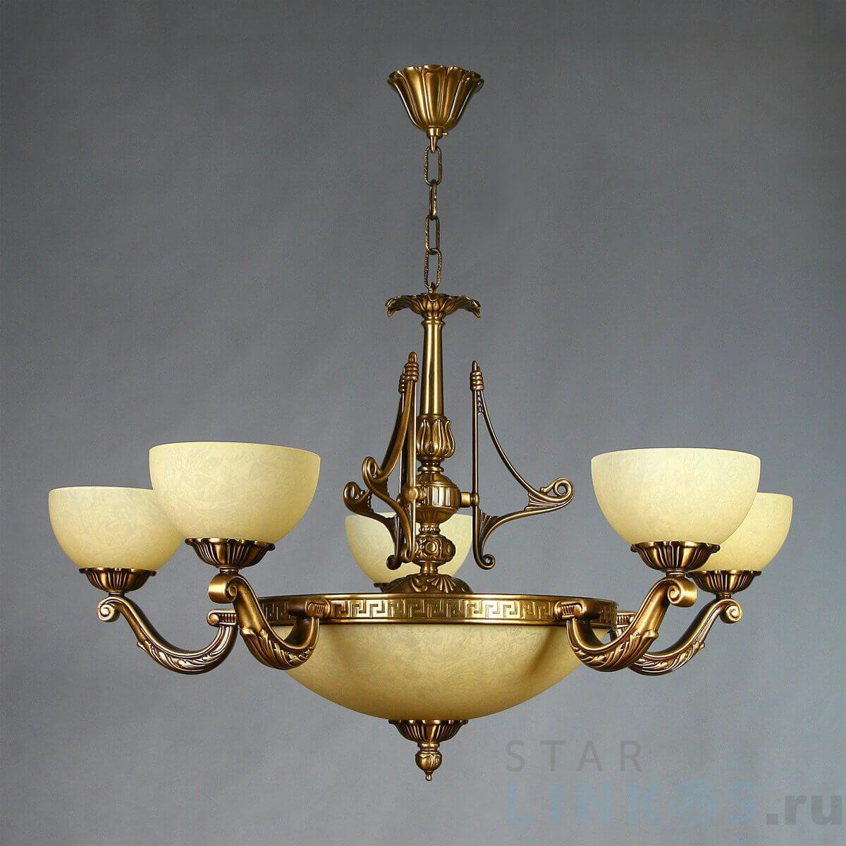 Подвесная люстра Ambiente Tenerife 02166/5 AB в классическом стиле используется в интерьере гостиной с установкой на потолок.