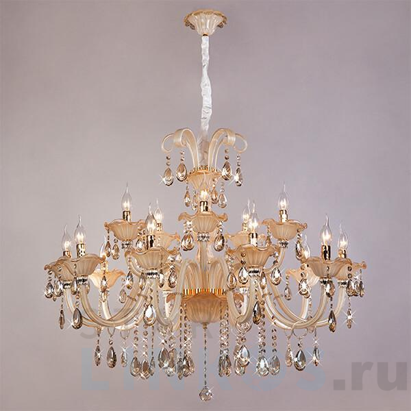 Поставщик рекомендует использовать лампы накаливания с цоколем E14. Подвесная люстра Bogates 124/10+5 Strotskis в классическом стиле используется в интерьере больших залов с установкой на потолок.