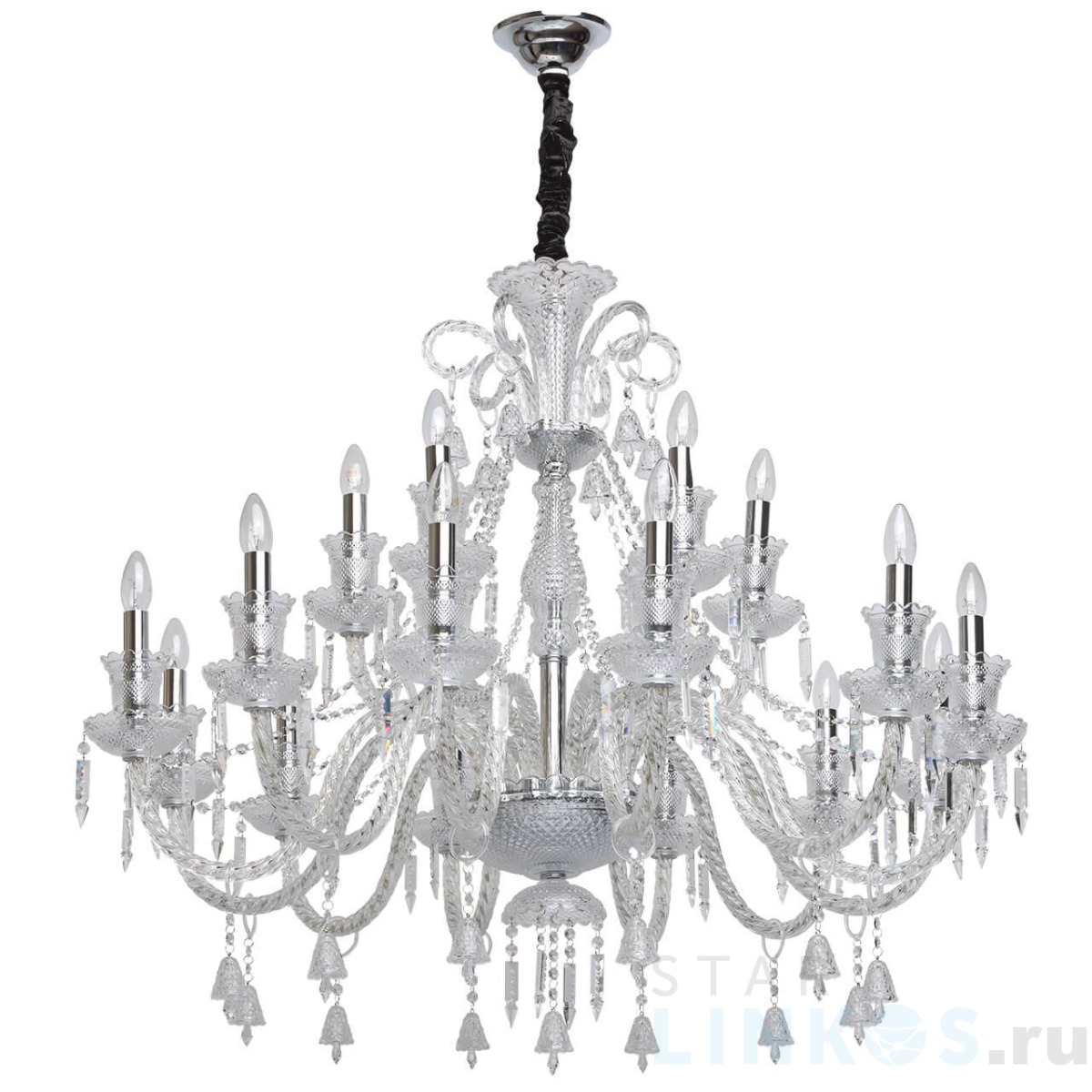 Поставщик рекомендует использовать лампы накаливания с цоколем E14 для освещения площади 40 м2. Подвесная люстра Chiaro Барселона 313012418 в классическом стиле используется в интерьере больших залов с установкой на потолок.