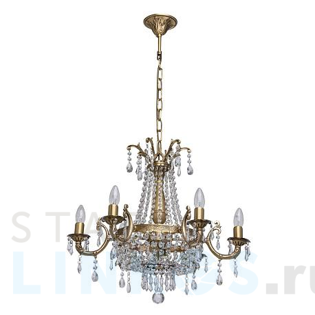 Поставщик рекомендует использовать лампы накаливания с цоколем E14 для освещения площади 27 м2. Подвесная люстра Chiaro Изабелла 351011808 в классическом стиле используется в интерьере гостиной с установкой на потолок.