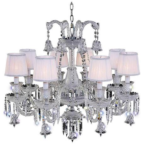 Поставщик рекомендует использовать лампы накаливания с цоколем E14 для освещения площади 17,8 м2. Подвесная люстра Crystal Lux Princess SP8 в стиле арт-деко используется в интерьере гостиной с установкой на потолок.