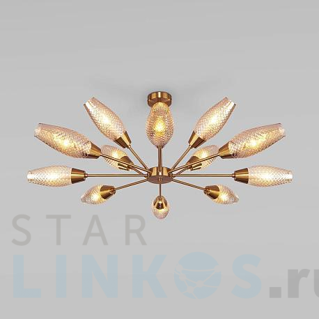 Поставщик рекомендует использовать лампы накаливания с цоколем E14. Подвесная люстра Eurosvet Thalia 60140/12 золото в используется в интерьере гостиной с установкой на потолок.