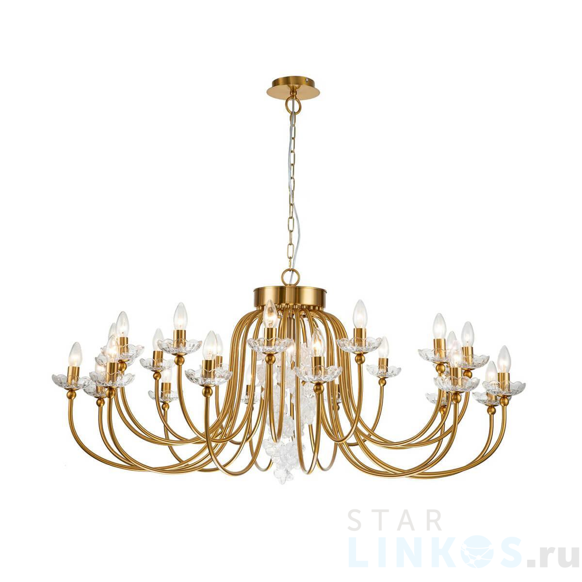 Поставщик рекомендует использовать лампы накаливания с цоколем E14 для освещения площади 56 м2. Подвесная люстра Favourite Bellis 2871-25P в стиле арт-деко используется в интерьере больших залов с установкой на потолок.