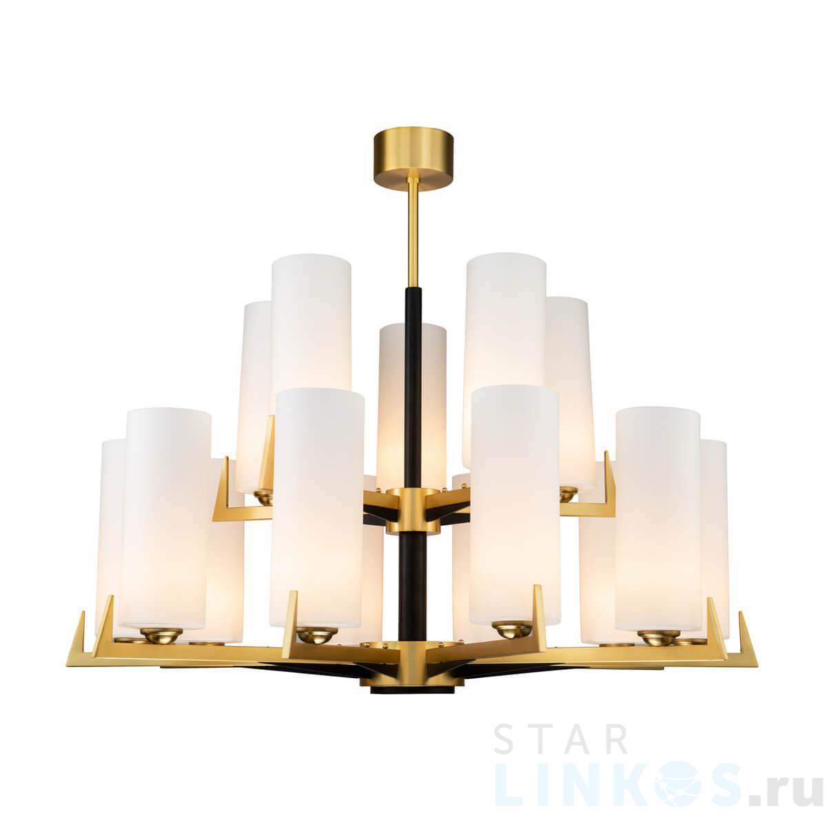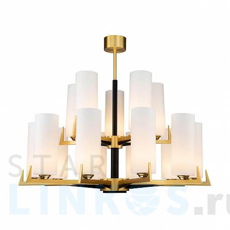 Поставщик рекомендует использовать лампы накаливания с цоколем E14 для освещения площади 33,3 м2. Подвесная люстра Favourite Maximo 2623-15P в современном стиле используется в интерьере гостиной с установкой на потолок.