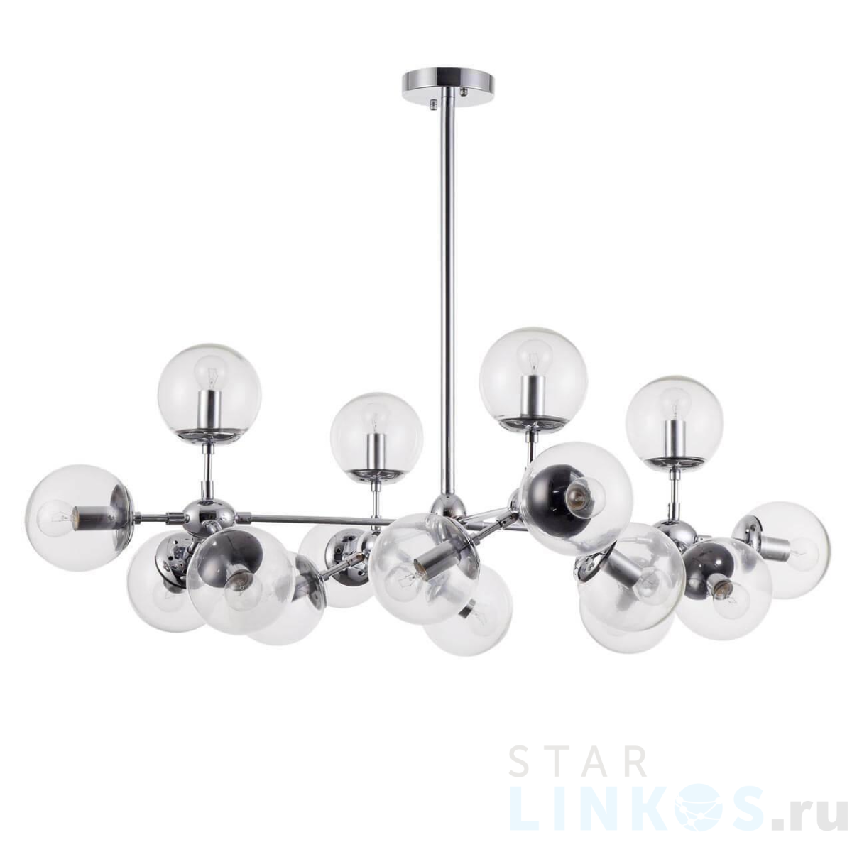 Поставщик рекомендует использовать лампы накаливания с цоколем E14 для освещения площади 53,3 м2. Подвесная люстра Freya Richard FR5596PL-16CH в стиле лофт используется в интерьере больших залов с установкой на потолок.