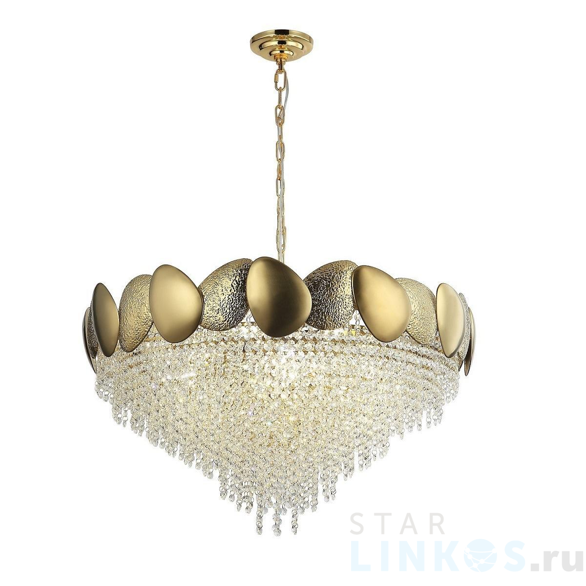 Поставщик рекомендует использовать лампы накаливания с цоколем E14 для освещения площади 34 м2. Подвесная люстра Gerhort G21066/15GD в используется в интерьере гостиной с установкой на потолок.
