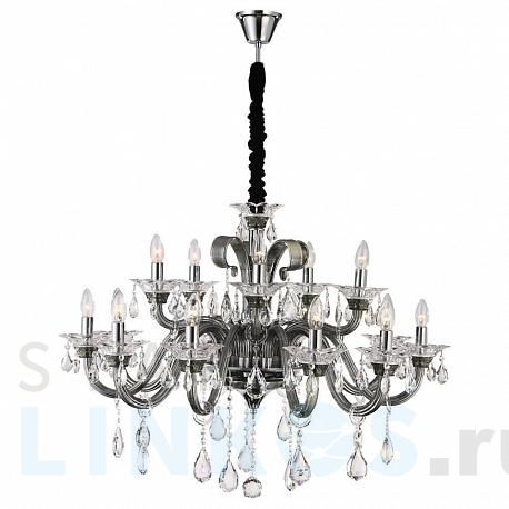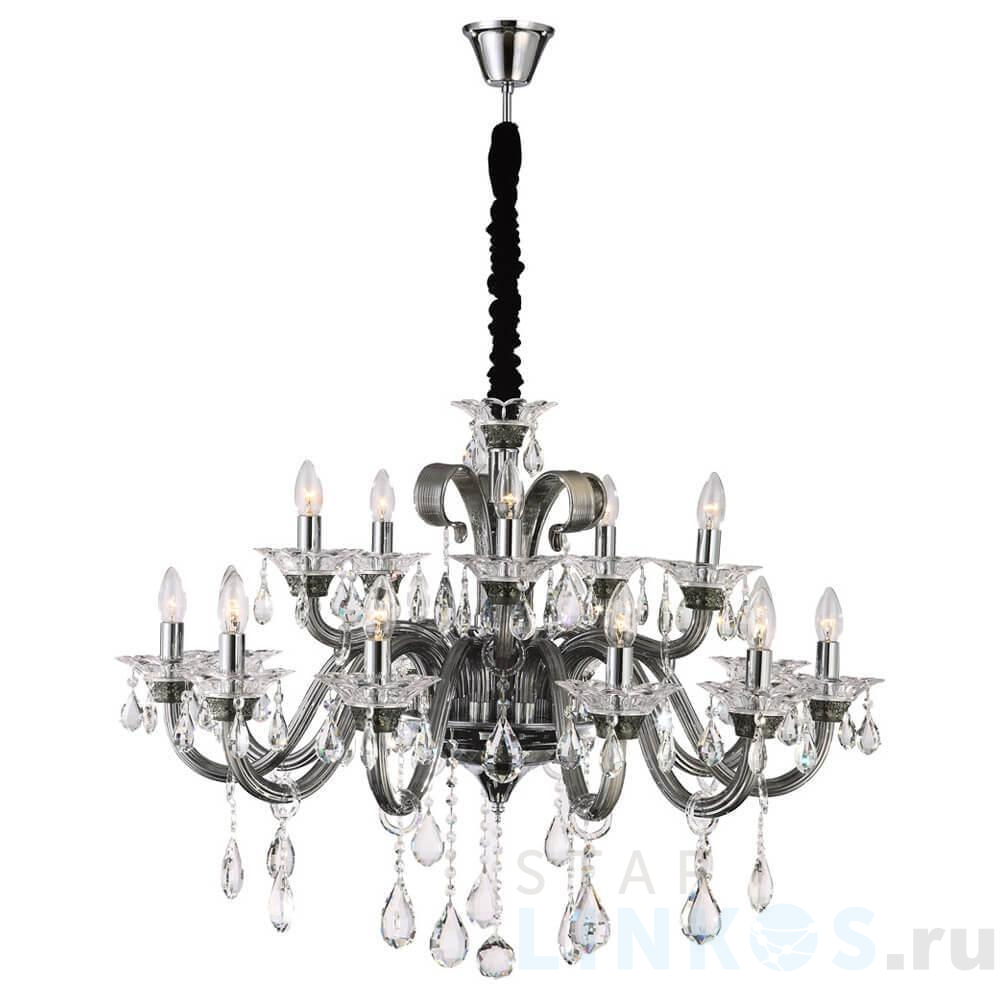 Поставщик рекомендует использовать лампы накаливания с цоколем E14 для освещения площади 33,3 м2. Подвесная люстра Globo Dunja 64104-15 в классическом стиле используется в интерьере больших залов с установкой на потолок.
