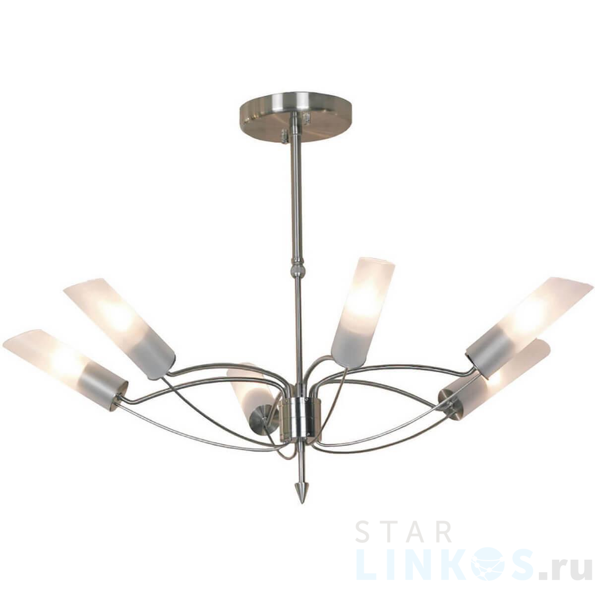 Подвесная люстра Lussole Lano GRLSA-2813-06 в современном стиле используется в интерьере гостиной с установкой на потолок.