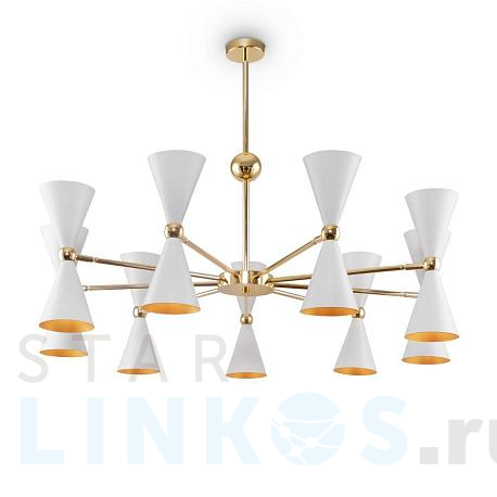 Поставщик рекомендует использовать лампы накаливания с цоколем E14 для освещения площади 40 м2. Подвесная люстра Maytoni Vesper MOD108PL-18WG в современном стиле используется в интерьере больших залов с установкой на потолок.
