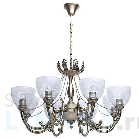 Поставщик рекомендует использовать лампы накаливания с цоколем E27 для освещения площади 27 м2. Подвесная люстра MW-Light Аманда 481011608 в классическом стиле используется в интерьере гостиной с установкой на потолок.