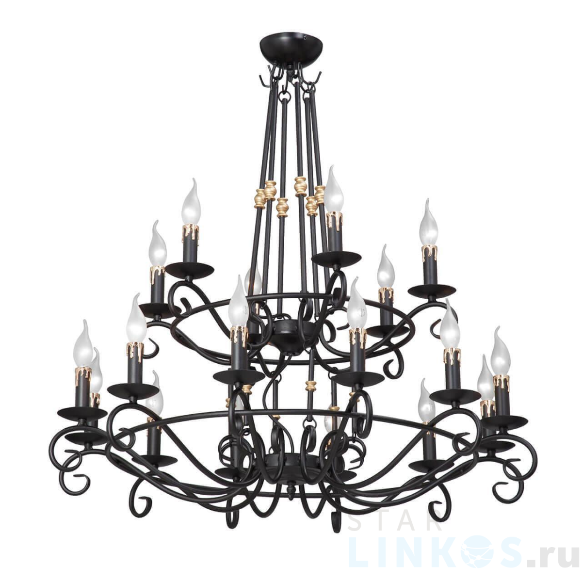 Поставщик рекомендует использовать лампы накаливания с цоколем E14 для освещения площади 40 м2. Подвесная люстра Vitaluce V1039/12+6 в используется в интерьере гостиной с установкой на потолок.