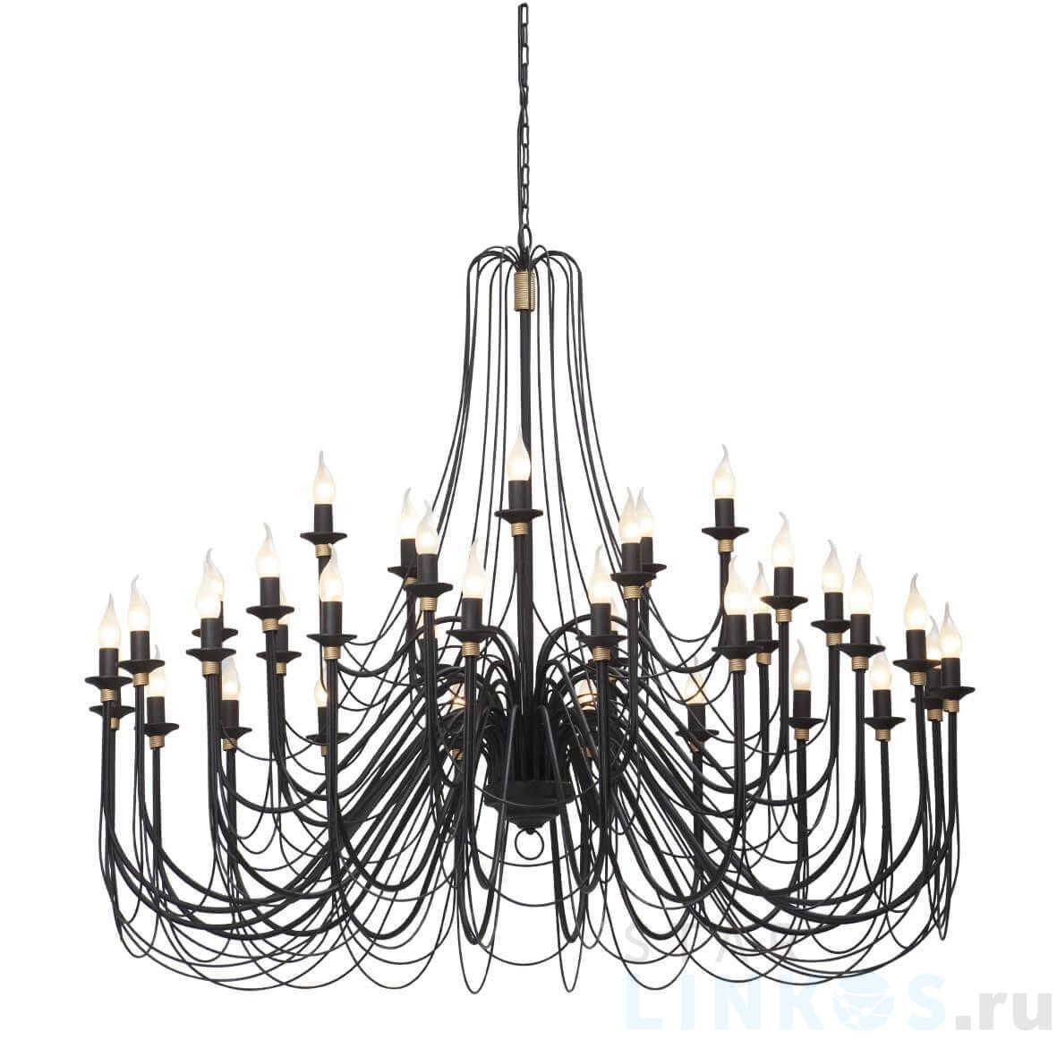 Поставщик рекомендует использовать лампы накаливания с цоколем E14 для освещения площади 78 м2. Подвесная люстра Vitaluce V1044/35 в классическом стиле используется в интерьере гостиной с установкой на потолок.