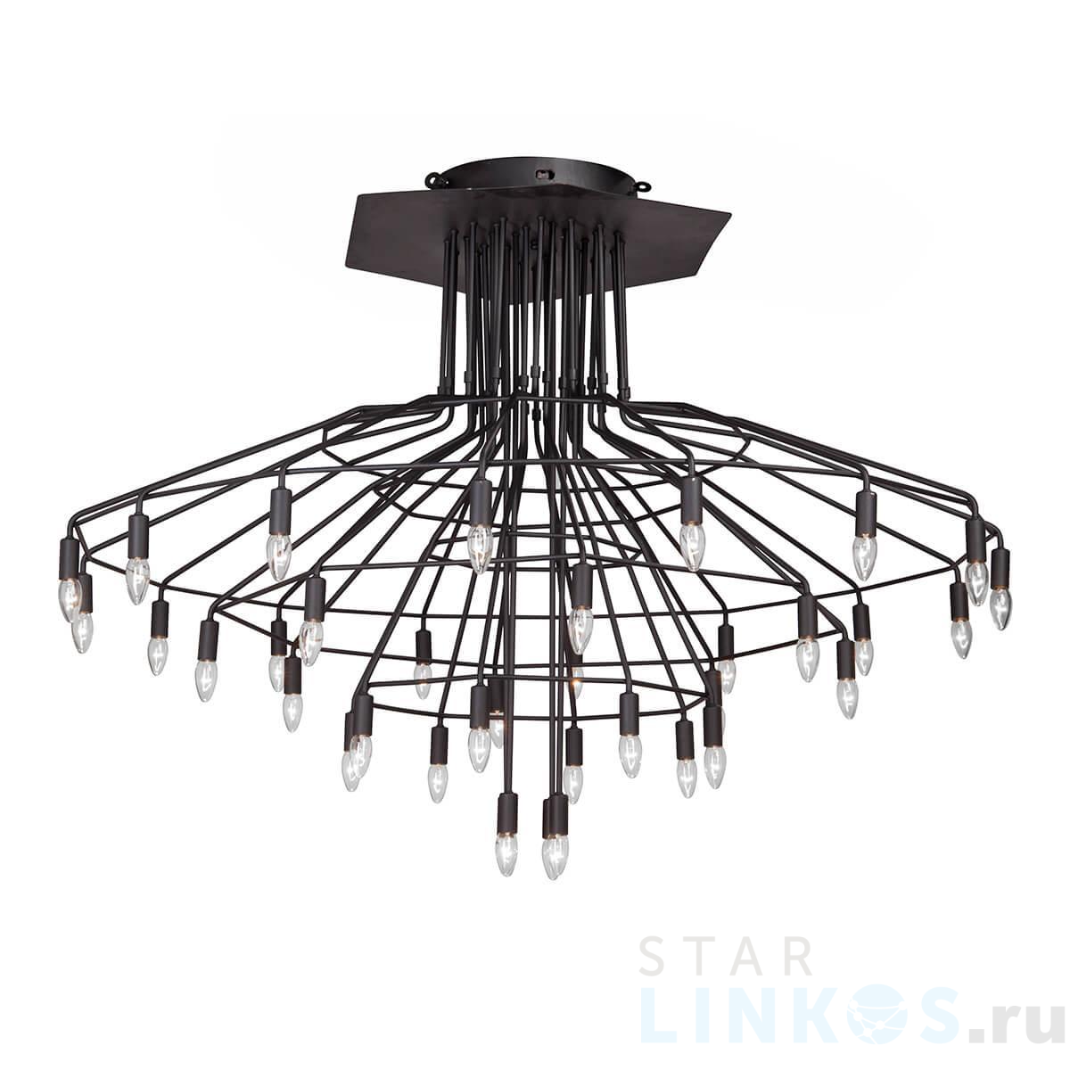 Поставщик рекомендует использовать лампы накаливания с цоколем E14 для освещения площади 80 м2. Подвесная люстра Vitaluce V4720-1/36PL в стиле лофт используется в интерьере гостиной с установкой на потолок.