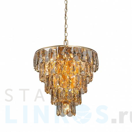 Поставщик рекомендует использовать лампы накаливания с цоколем E14 для освещения площади 42 м2. Подвесная люстра Vitaluce V5279-8/20+1 в стиле прованс используется в интерьере гостиной с установкой на потолок.