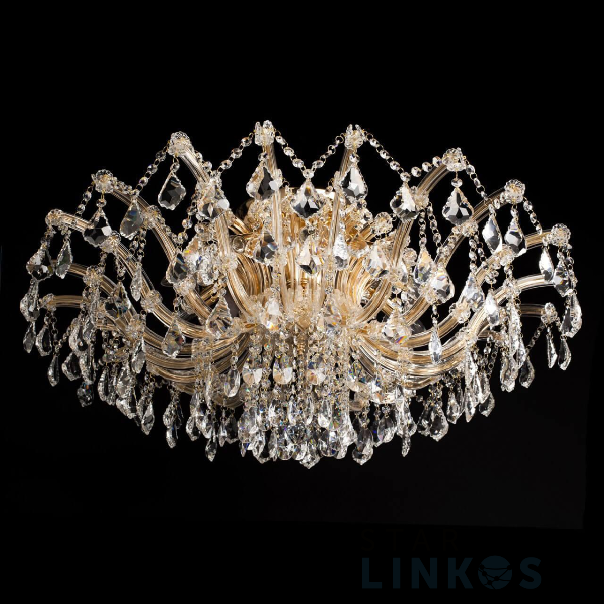 Поставщик рекомендует использовать лампы накаливания с цоколем E14 для освещения площади 34 м2. Потолочная люстра Chiaro Луиза 383010210 в стиле арт-деко используется в интерьере больших залов с установкой на потолок.