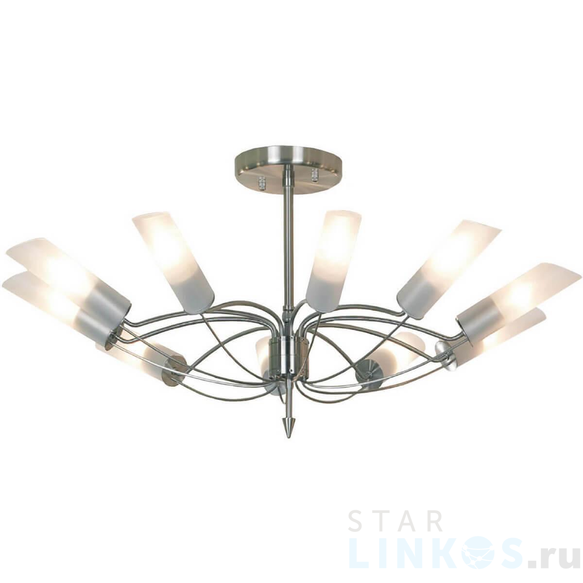 Поставщик рекомендует использовать лампы накаливания с цоколем E14 для освещения площади 33,3 м2. Потолочная люстра Lussole Lano LSA-2813-10 в современном стиле используется в интерьере гостиной с установкой на потолок.
