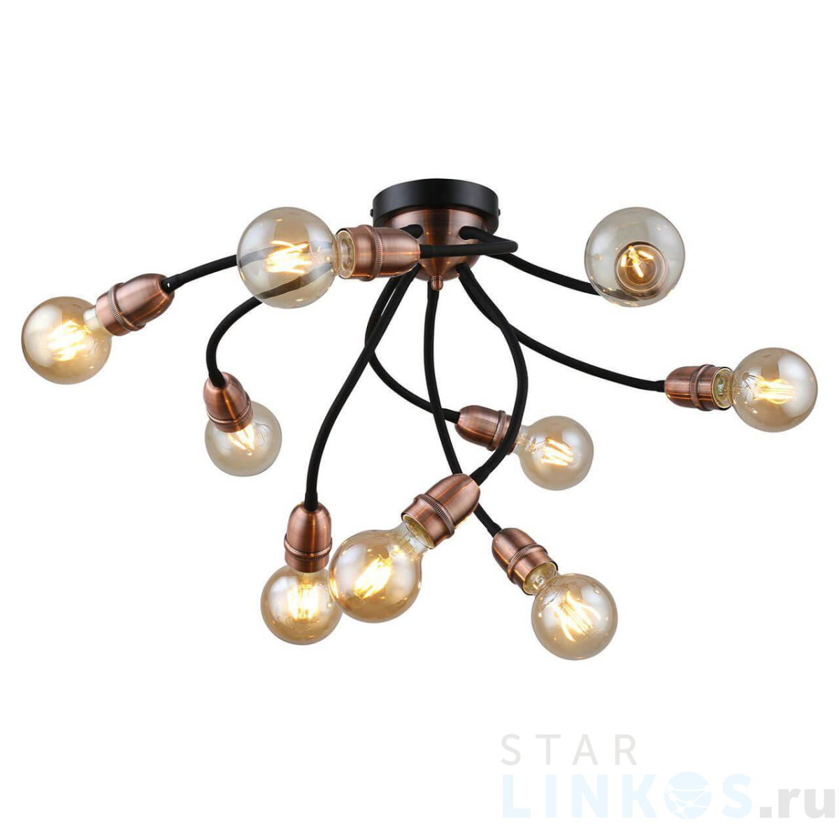 Поставщик рекомендует использовать лампы накаливания с цоколем E27 для освещения площади 20 м2. Потолочная люстра Lussole Loft Regina LSP-8247 в стиле лофт используется в интерьере гостиной с установкой на потолок.