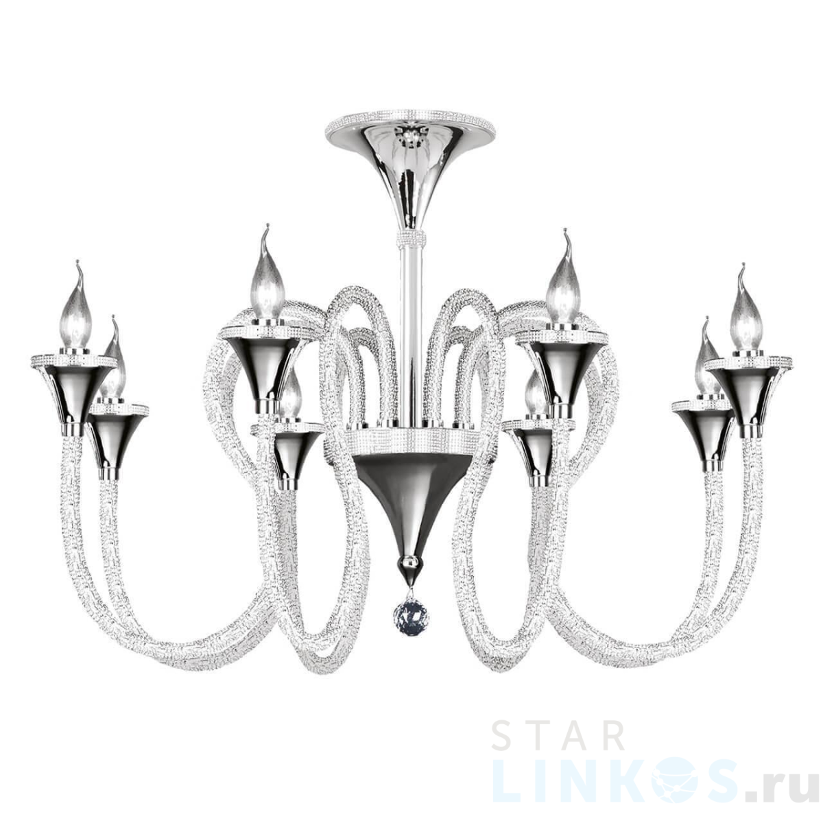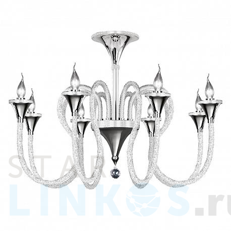 Поставщик рекомендует использовать лампы накаливания с цоколем E14 для освещения площади 26,7 м2. Потолочная люстра Osgona Serpente 703084 в используется в интерьере гостиной с установкой на потолок.