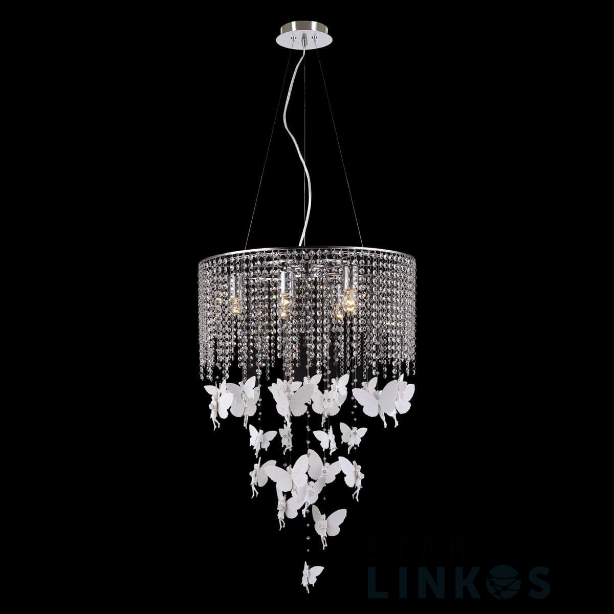Поставщик рекомендует использовать лампы накаливания с цоколем E27 для освещения площади 13,3 м2. Каскадная люстра Favourite Fairies 1165-6PC в используется в интерьере гостиной с установкой на потолок.