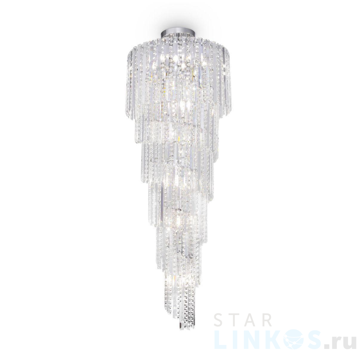 Поставщик рекомендует использовать лампы накаливания с цоколем E14. Каскадная люстра Maytoni Louis RC005PL-12CH в классическом стиле используется в интерьере больших залов с установкой на потолок.