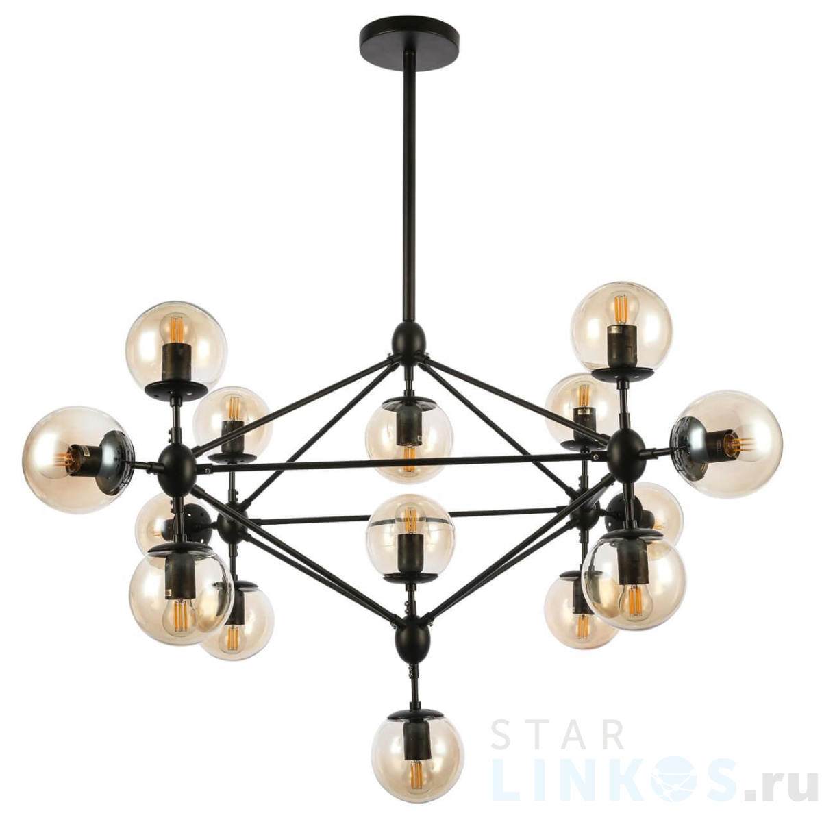 Поставщик рекомендует использовать лампы накаливания с цоколем E27 для освещения площади 34 м2. Подвесная люстра Evoluce Lacotta SLE154903-15 в стиле лофт используется в интерьере гостиной с установкой на потолок.