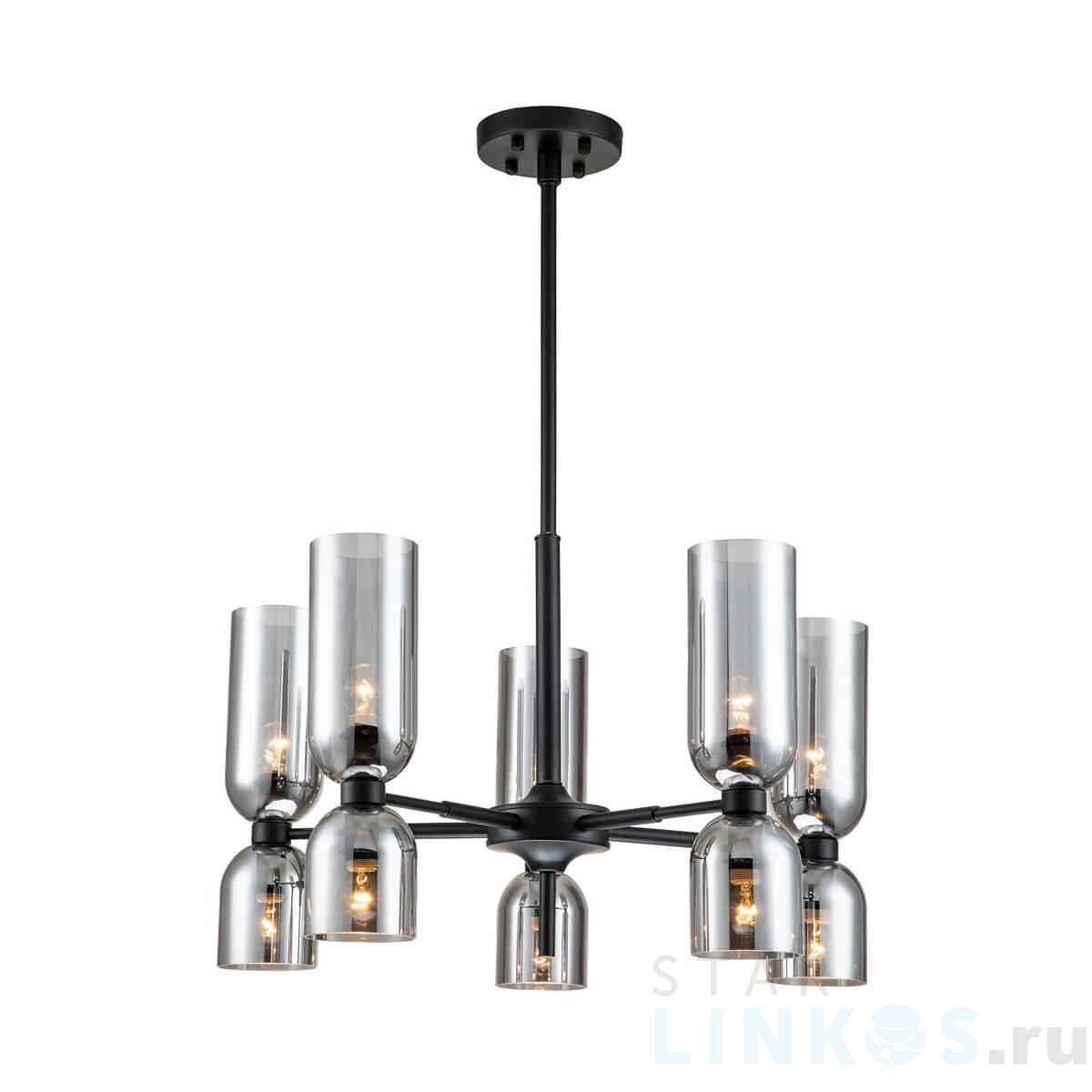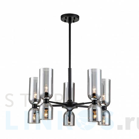 Поставщик рекомендует использовать лампы накаливания с цоколем E14 для освещения площади 22,2 м2. Подвесная люстра Favourite Amusing 2877-5P в современном стиле используется в интерьере гостиной с установкой на потолок.