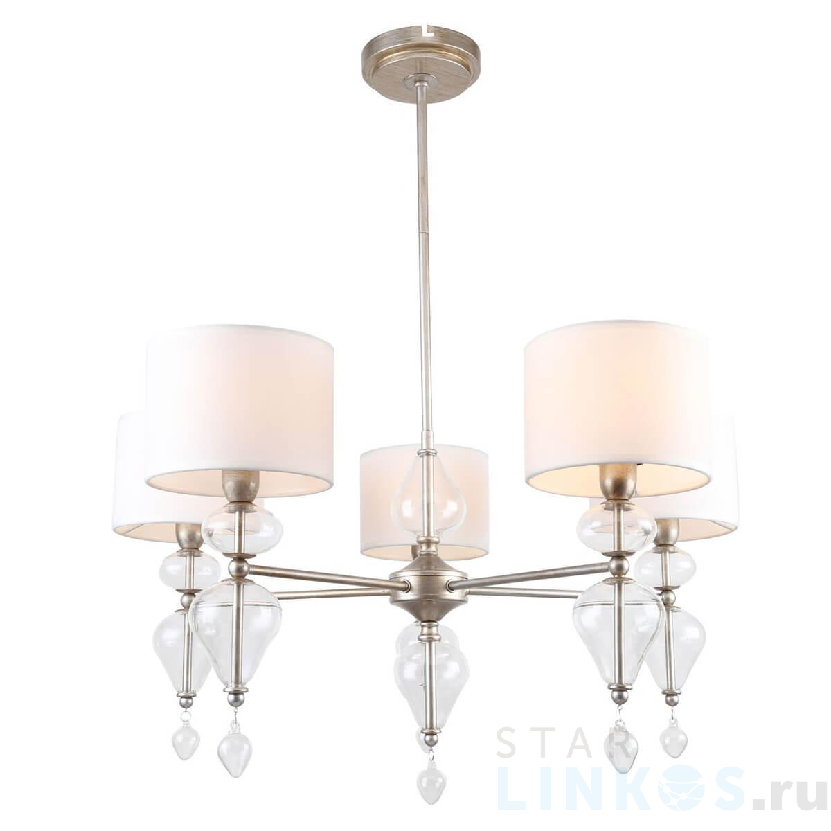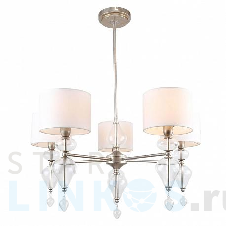 Поставщик рекомендует использовать лампы накаливания с цоколем E14. Подвесная люстра Favourite Ironia 2554-5P в стиле арт-деко используется в интерьере спальни с установкой на потолок.
