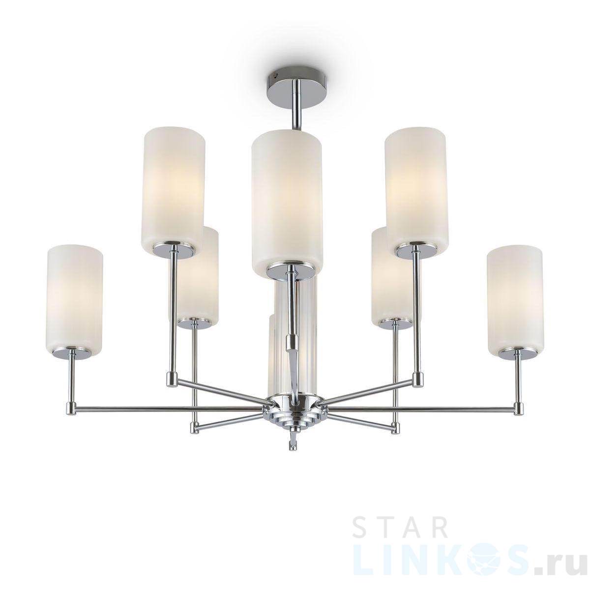 Поставщик рекомендует использовать лампы накаливания с цоколем E14. Подвесная люстра Freya Agnes FR5184PL-08CH в используется в интерьере гостиной с установкой на потолок.