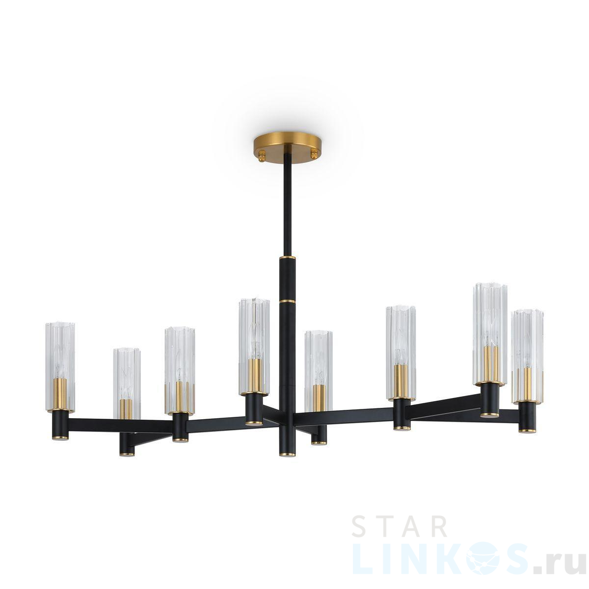 Поставщик рекомендует использовать лампы накаливания с цоколем E14. Подвесная люстра Freya Ambra FR5167PL-08B в используется в интерьере гостиной с установкой на потолок.