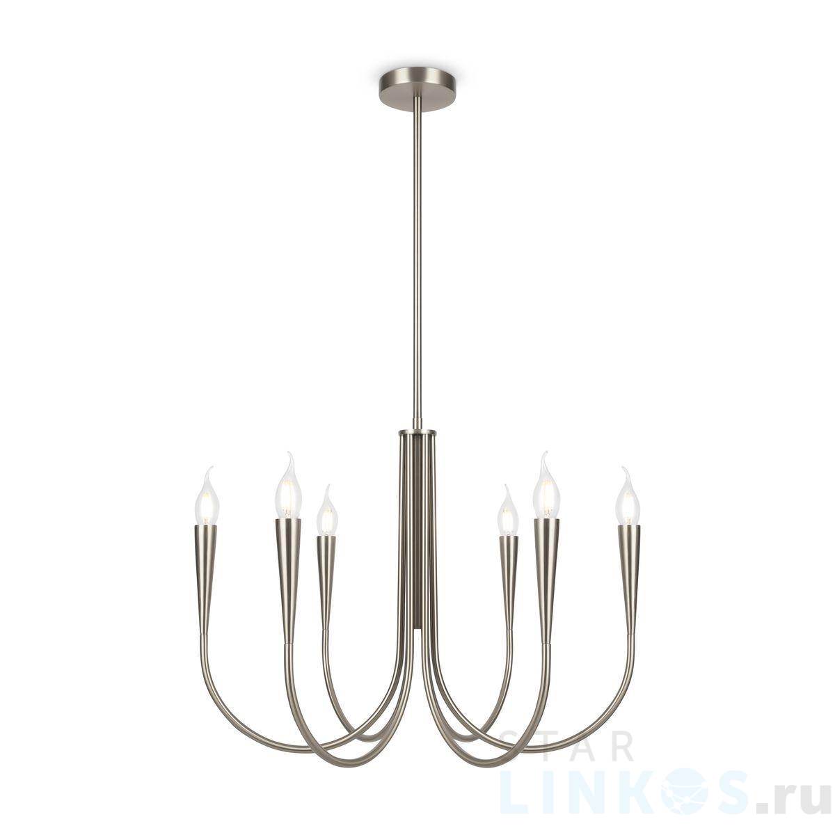 Поставщик рекомендует использовать лампы накаливания с цоколем E14. Подвесная люстра Freya Branches FR5253PL-06N в используется в интерьере спальни с установкой на потолок.