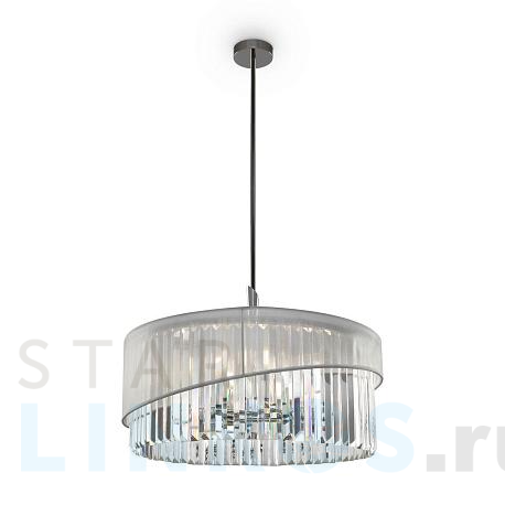 Поставщик рекомендует использовать лампы накаливания с цоколем E14. Подвесная люстра Freya Eclipse FR5170PL-08N в используется в интерьере гостиной с установкой на потолок.