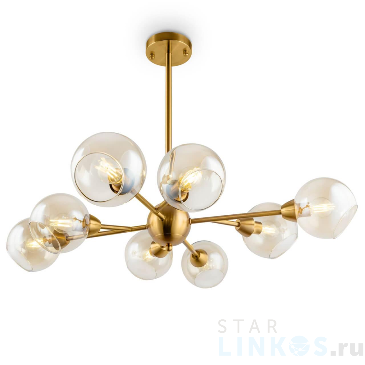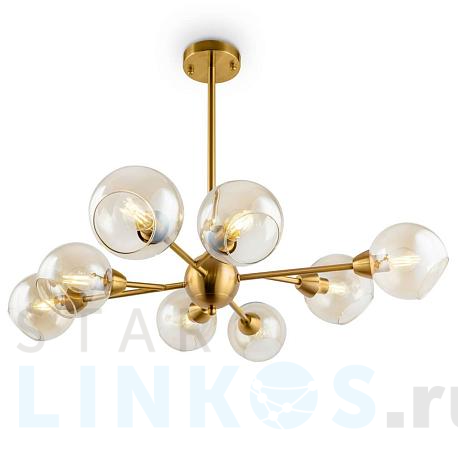 Поставщик рекомендует использовать лампы накаливания с цоколем E14 для освещения площади 17,8 м2. Подвесная люстра Freya Sherry FR5121PL-08G в используется в интерьере гостиной с установкой на потолок.
