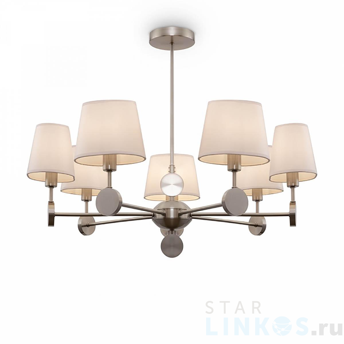 Поставщик рекомендует использовать лампы накаливания с цоколем E14. Подвесная люстра Freya Soho FR2028PL-07N в используется в интерьере спальни с установкой на потолок.