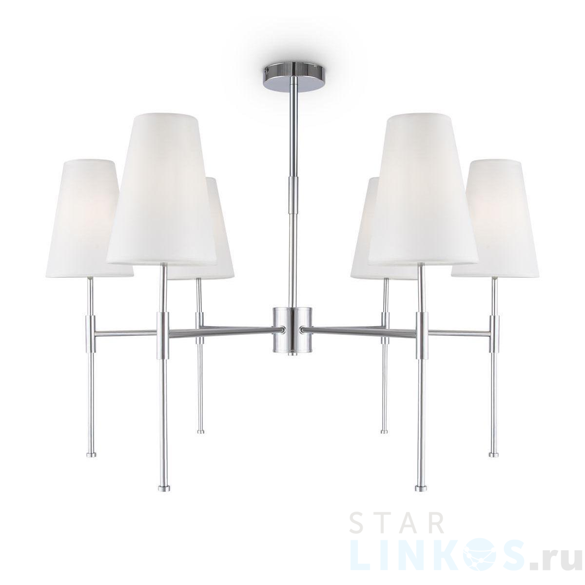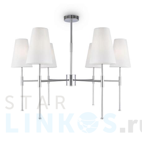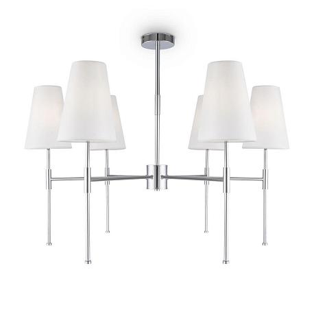 Поставщик рекомендует использовать лампы накаливания с цоколем E14. Подвесная люстра Freya Tida FR5196PL-06CH в используется в интерьере спальни с установкой на потолок.