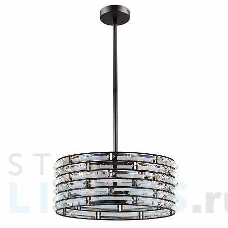 Поставщик рекомендует использовать лампы накаливания с цоколем E14 для освещения площади 8,9 м2. Подвесная люстра Lightstar Amerigo 746048 в стиле Хай-Тек используется в интерьере спальни с установкой на потолок.