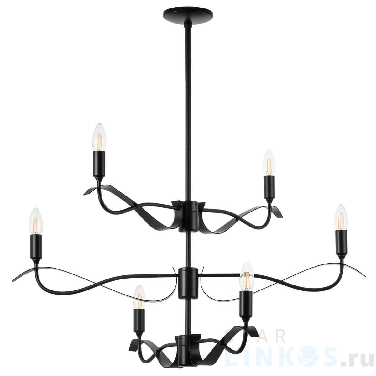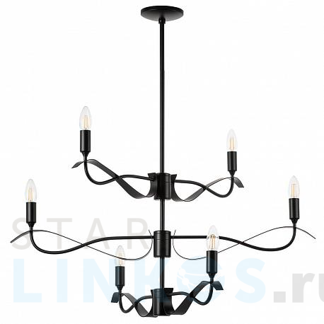 Поставщик рекомендует использовать лампы накаливания с цоколем E14. Подвесная люстра Lightstar Ragno 733267 в используется в интерьере гостиной с установкой на потолок.