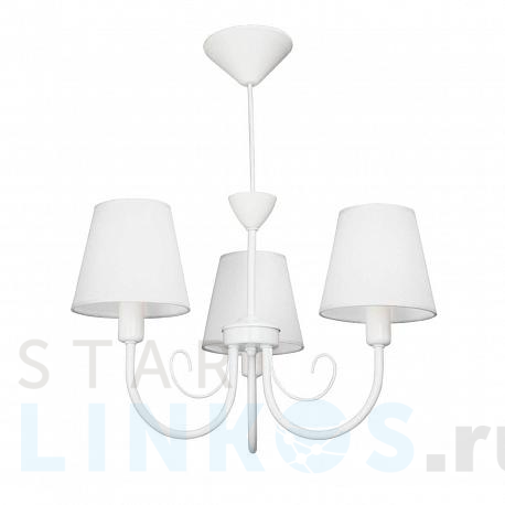 Поставщик рекомендует использовать лампы накаливания с цоколем E14 для освещения площади 6,7 м2. Подвесная люстра Vitaluce V3325/3 в классическом стиле используется в интерьере гостиной с установкой на потолок.