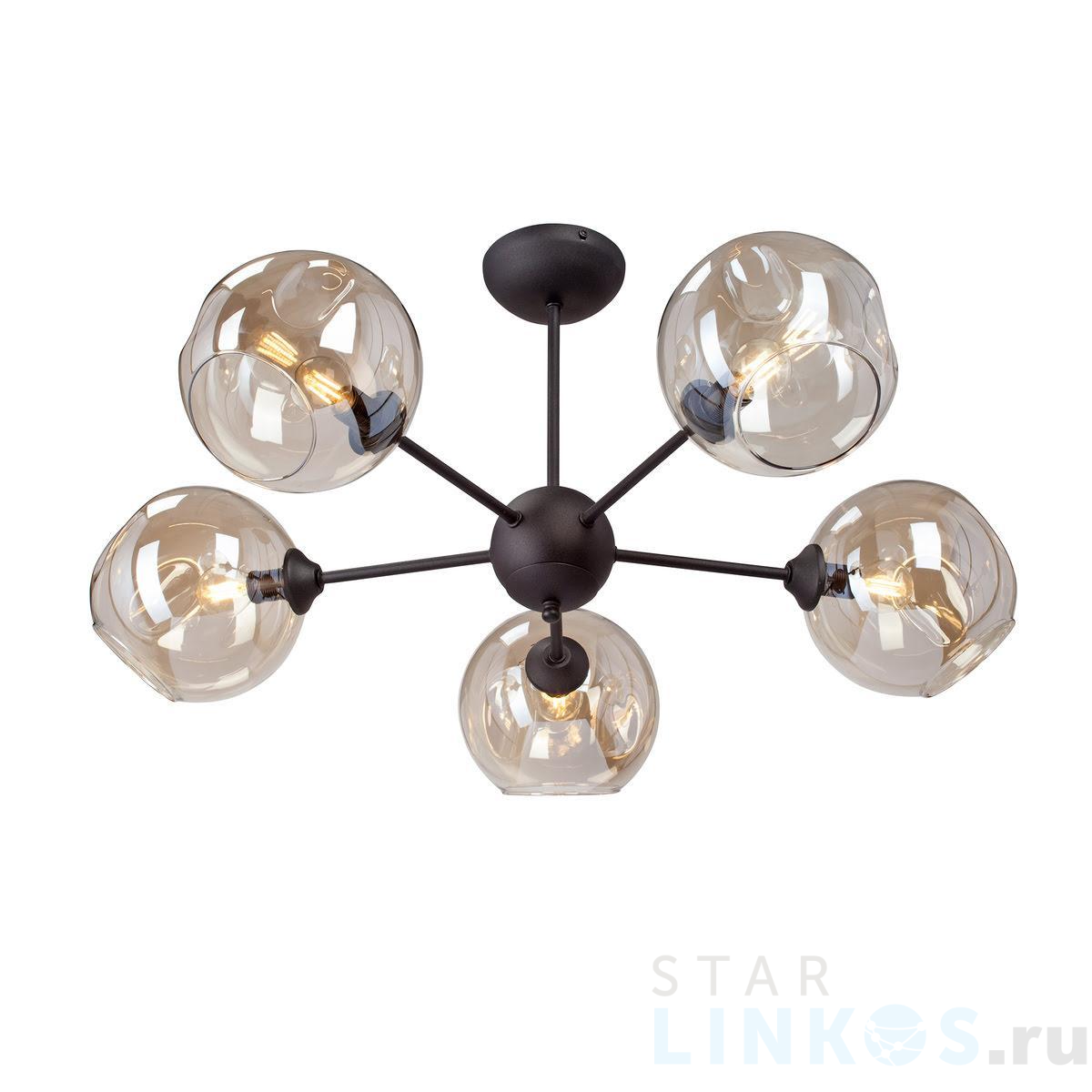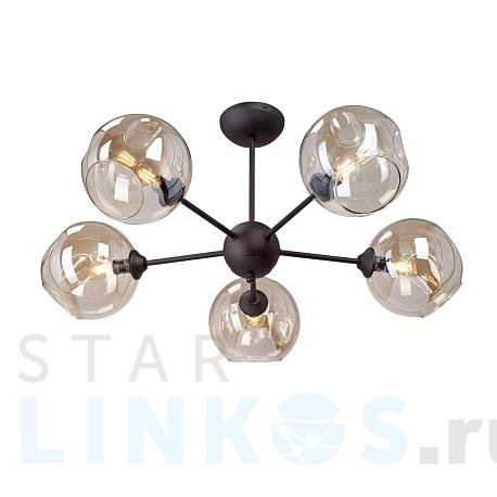Поставщик рекомендует использовать лампы накаливания с цоколем E14 для освещения площади 15 м2. Подвесная люстра Vitaluce V4321/5PL в стиле арт-деко используется в интерьере кухни с установкой на потолок.