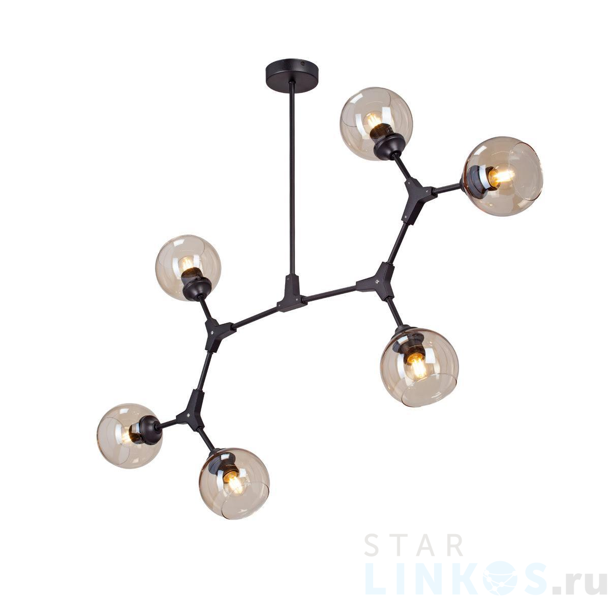 Поставщик рекомендует использовать лампы накаливания с цоколем E27 для освещения площади 12 м2. Подвесная люстра Vitaluce V48230-13/6PL в стиле арт-деко используется в интерьере гостиной с установкой на потолок.