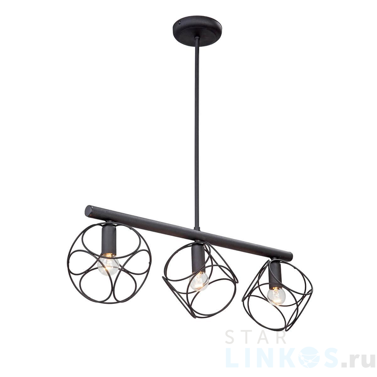 Поставщик рекомендует использовать лампы накаливания с цоколем E14 для освещения площади 6,7 м2. Подвесная люстра Vitaluce V4932-1/3PL в стиле лофт используется в интерьере гостиной с установкой на потолок.
