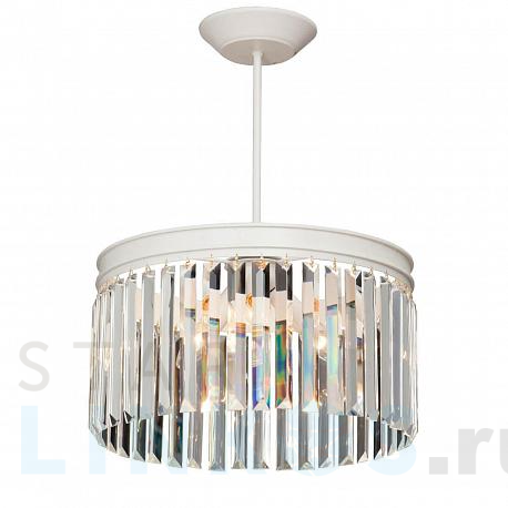 Поставщик рекомендует использовать лампы накаливания с цоколем E14 для освещения площади 6,7 м2. Подвесная люстра Vitaluce V5153-0/3PL в стиле прованс используется в интерьере гостиной с установкой на потолок.