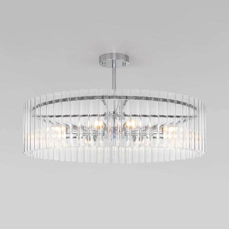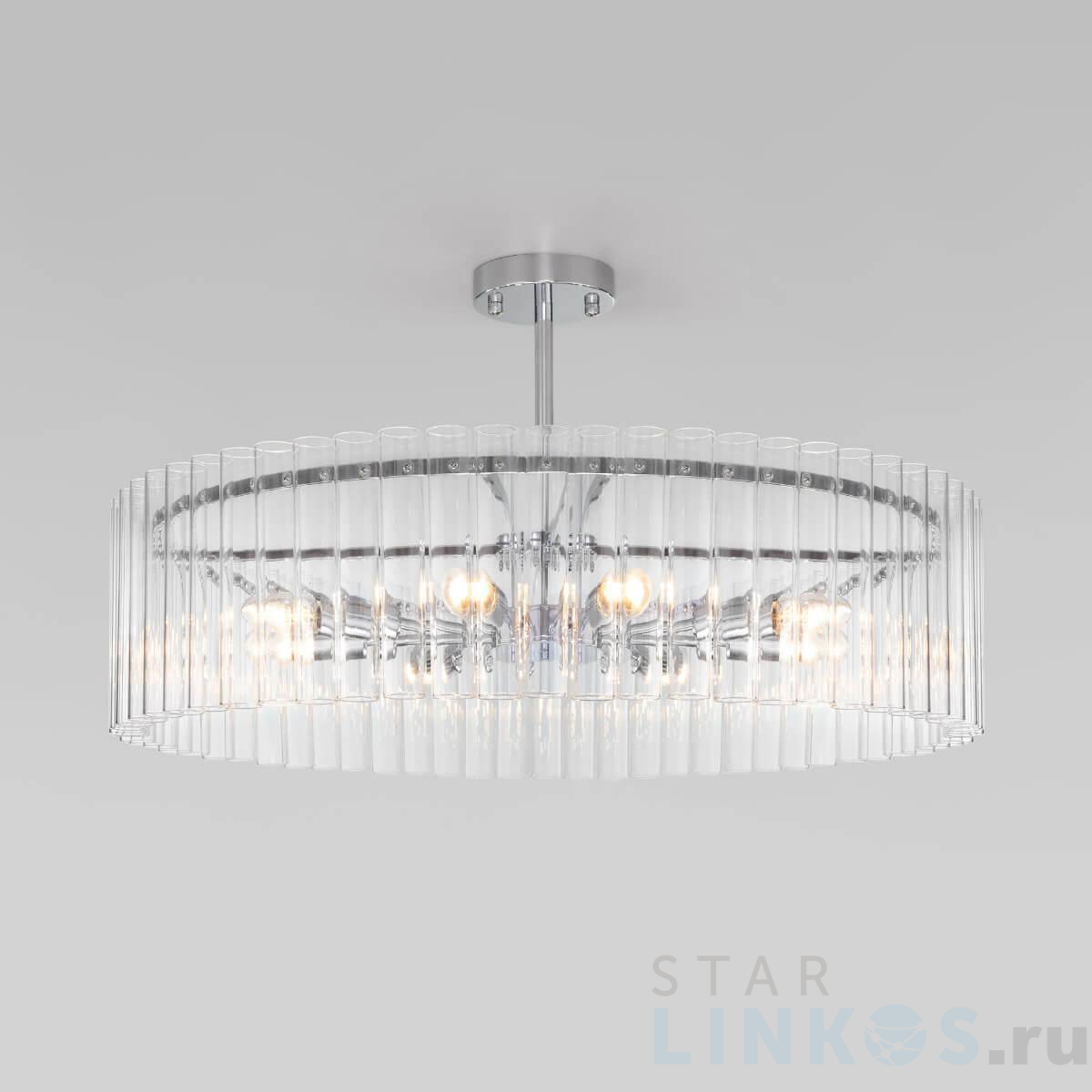 Поставщик рекомендует использовать лампы накаливания с цоколем E14 для освещения площади 14 м2. Потолочная люстра Bogates Flamel 374/8 в современном стиле используется в интерьере гостиной с установкой на потолок.