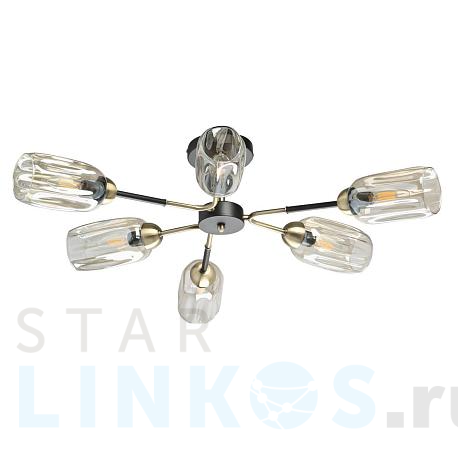 Поставщик рекомендует использовать лампы накаливания с цоколем E14 для освещения площади 12 м2. Потолочная люстра De Markt Гамбург 605017306 в современном стиле используется в интерьере спальни с установкой на потолок.