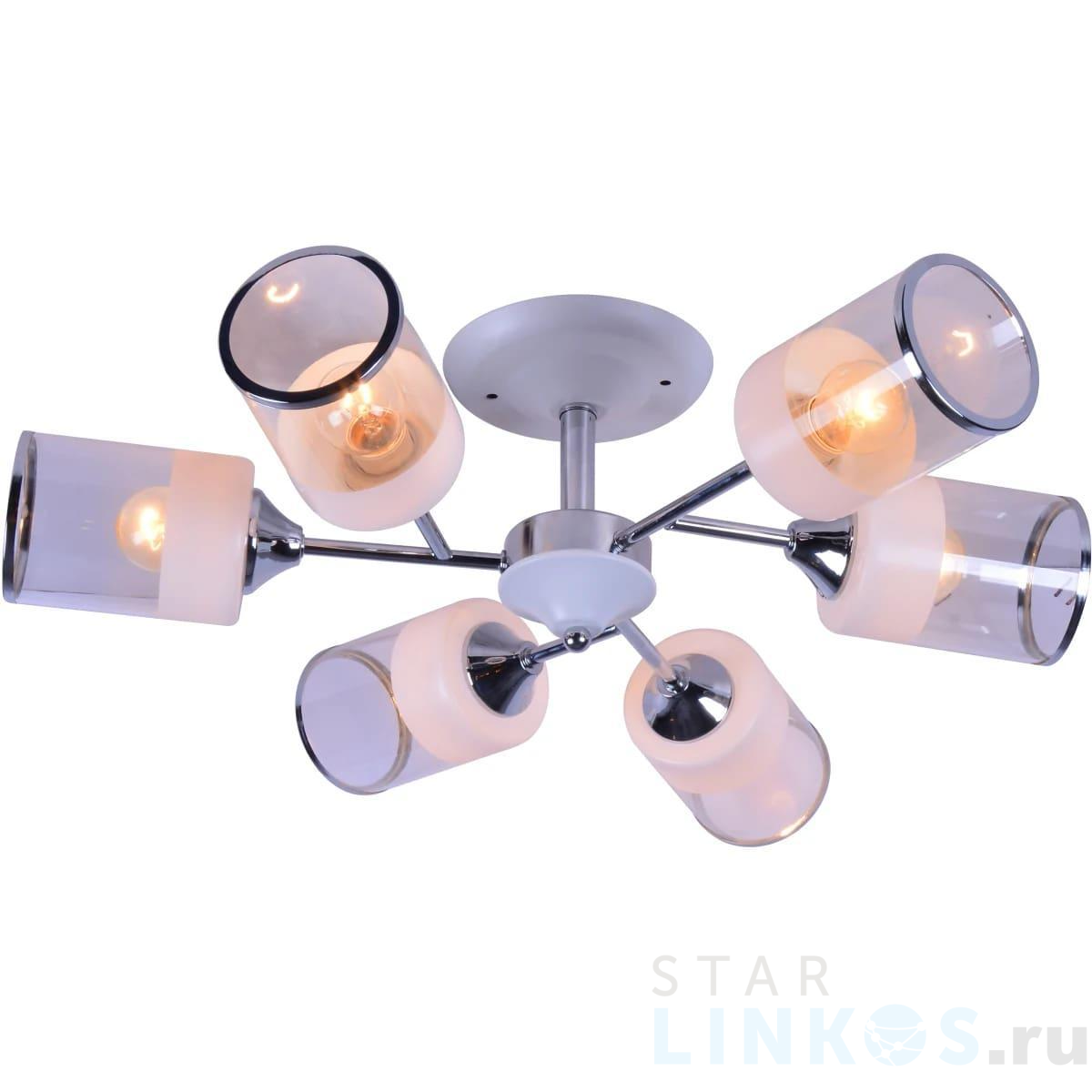 Поставщик рекомендует использовать лампы накаливания с цоколем E27 для освещения площади 22 м2. Потолочная люстра Escada 684/6P в используется в интерьере гостиной с установкой на потолок.