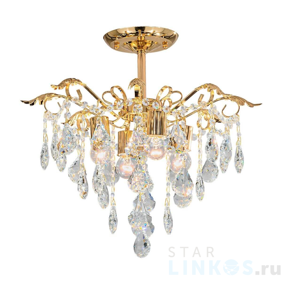 Поставщик рекомендует использовать лампы накаливания с цоколем E27 для освещения площади 12 м2. Потолочная люстра Escada Mona 1128/4 в классическом стиле используется в интерьере спальни с установкой на потолок.