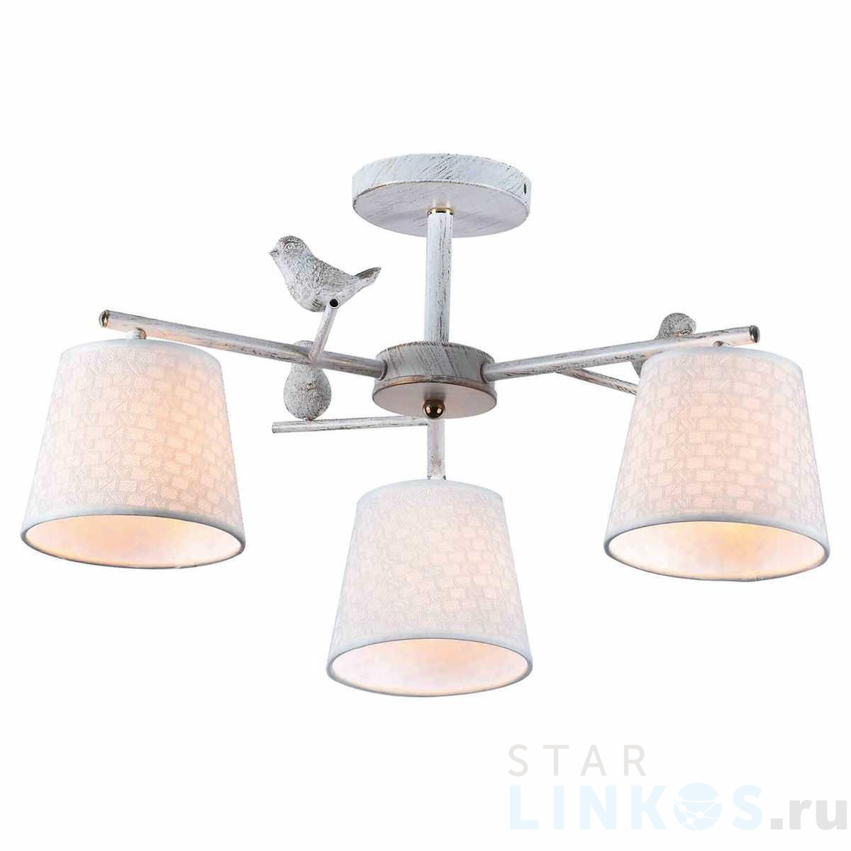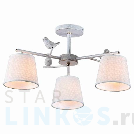 Поставщик рекомендует использовать лампы накаливания с цоколем E27 для освещения площади 3 м2. Потолочная люстра Escada Spring 697/3P в стиле прованс используется в интерьере спальни с установкой на потолок.