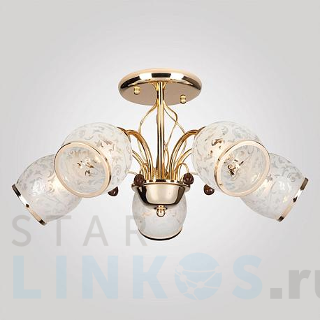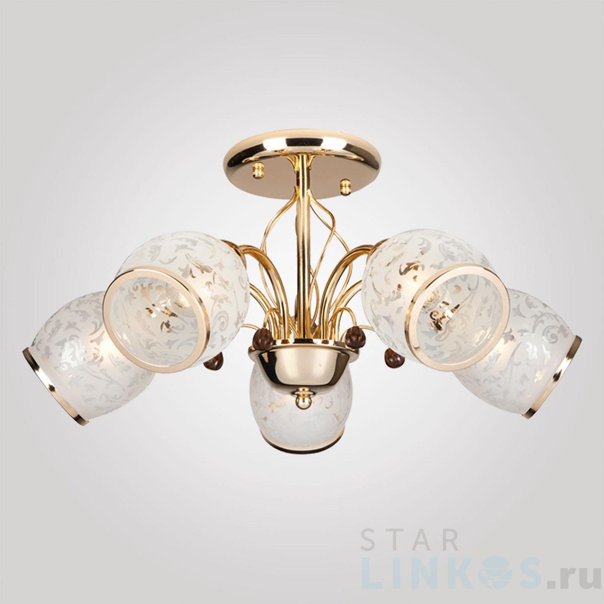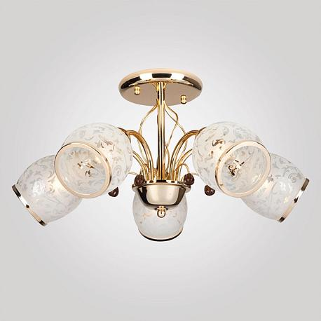 Поставщик рекомендует использовать лампы накаливания с цоколем E27 для освещения площади 24 м2. Потолочная люстра Eurosvet 30026/5 золото в используется в интерьере спальни с установкой на потолок.