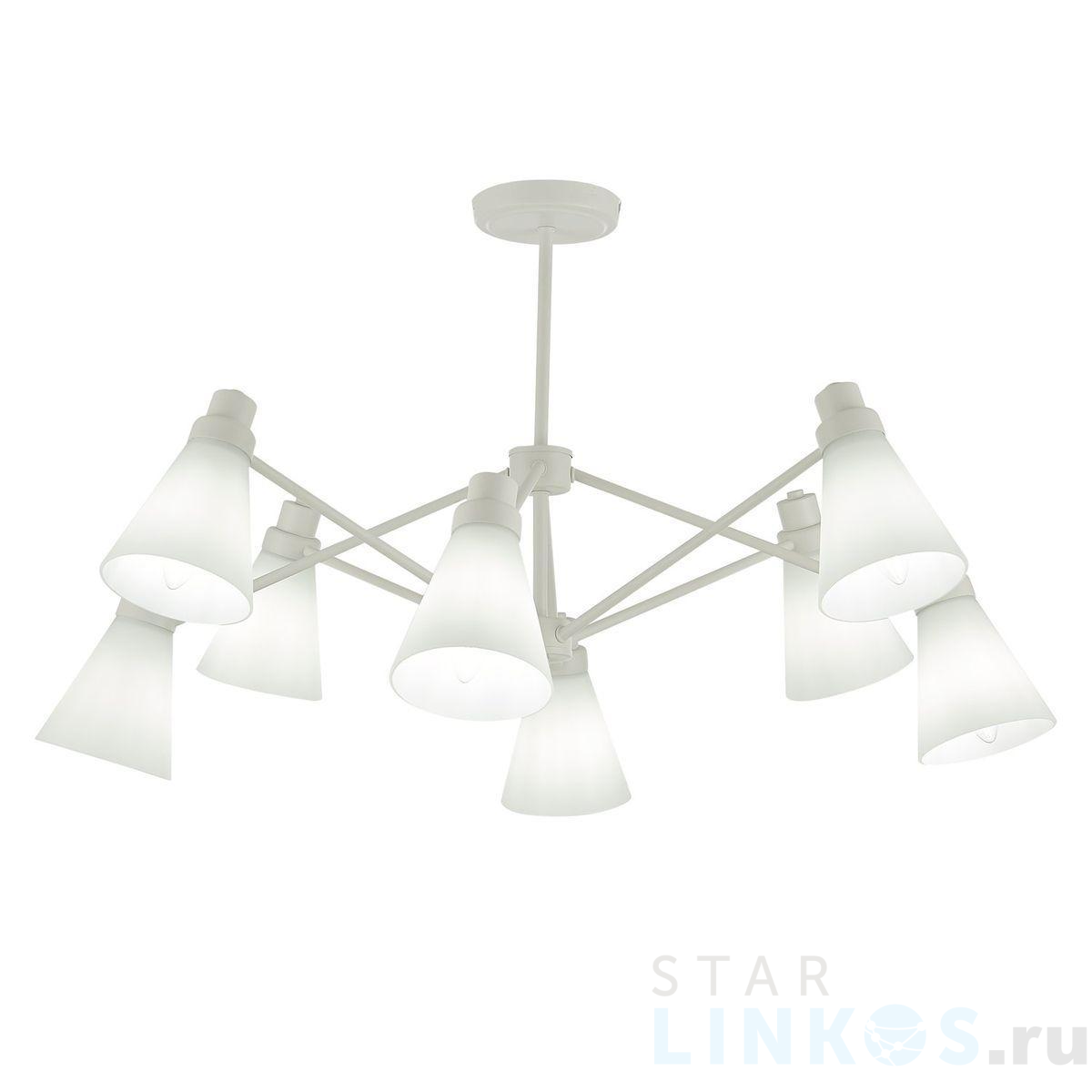 Поставщик рекомендует использовать лампы накаливания с цоколем E14 для освещения площади 17,8 м2. Потолочная люстра Evoluce Biane SLE103502-08 в используется в интерьере гостиной с установкой на потолок.