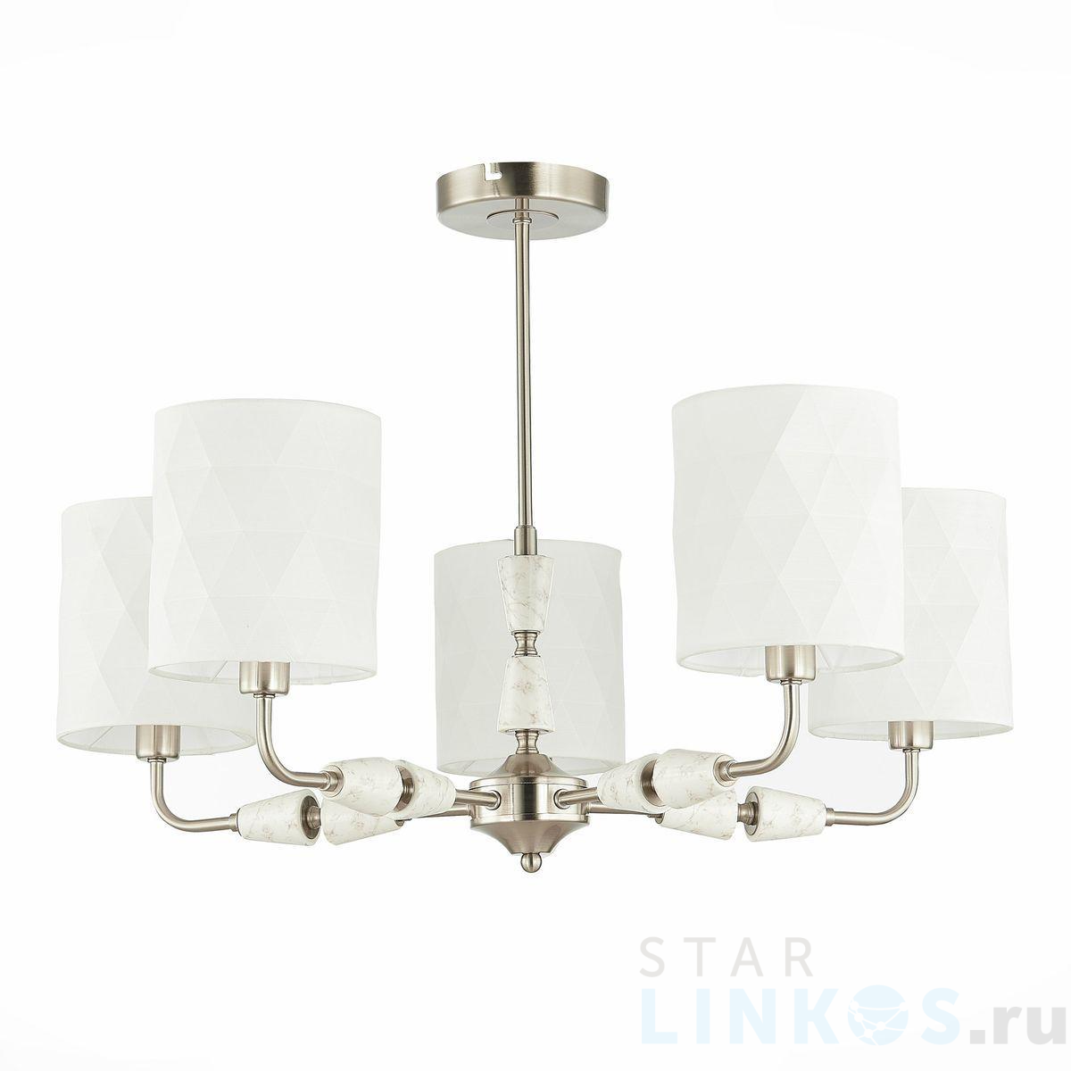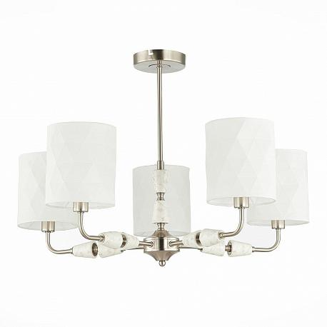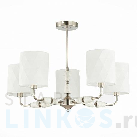 Поставщик рекомендует использовать лампы накаливания с цоколем E14 для освещения площади 11,1 м2. Потолочная люстра Evoluce Mili SLE107802-05 в используется в интерьере спальни с установкой на потолок.